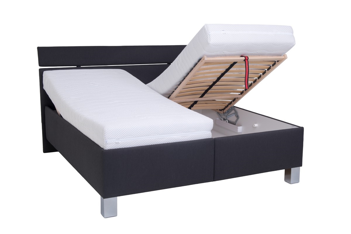 • Łóżko dwuosobowe oferuje regulowane zagłowie i regulowane stopki przy nogach dla maksymalnego relaksu.