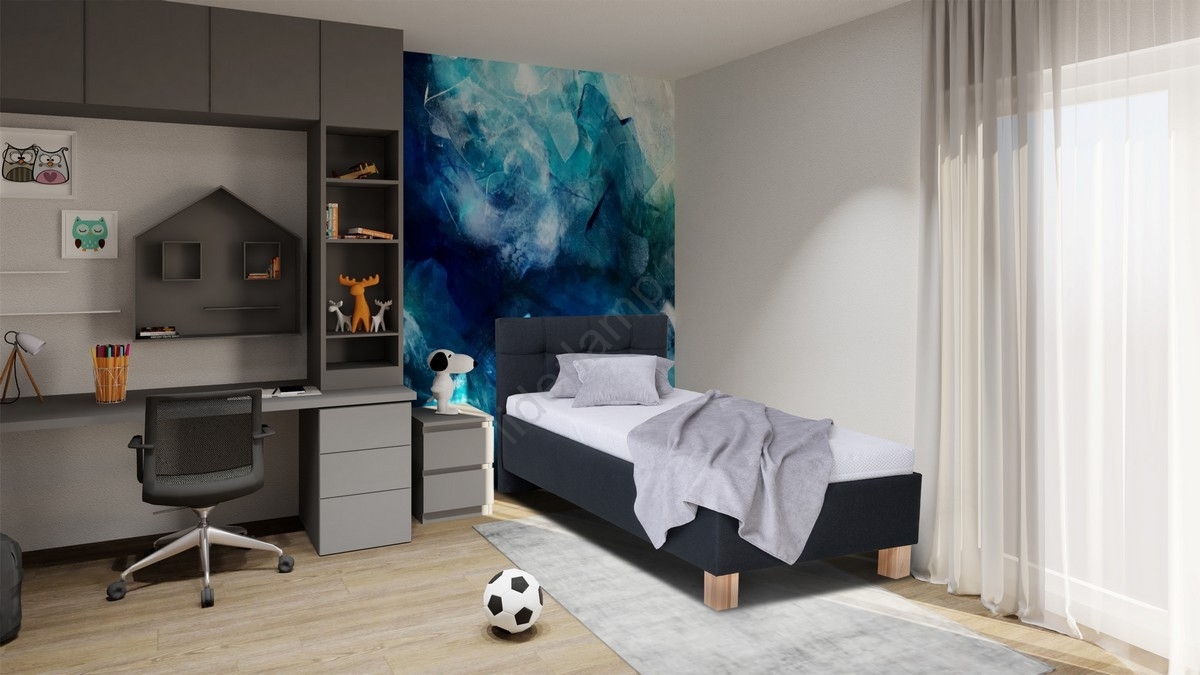 • Tapicerowane łóżko z materacem i pojemnikiem na pościel MARIA ONE 90x200 cm, antracyt