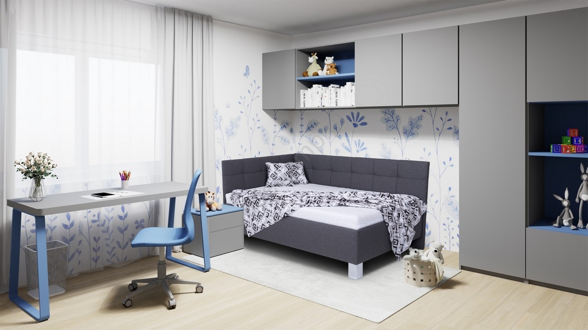 • Tapicerowane łóżko MARIA PETITE 120x200 cm z materacem i pojemnikiem na pościel, antracyt