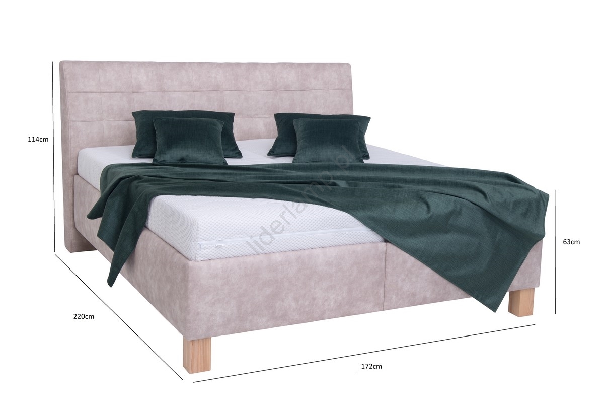 • Stabilna konstrukcja z masywnymi drewnianymi nogami zapewnia wytrzymałość i długą żywotność łóżka.