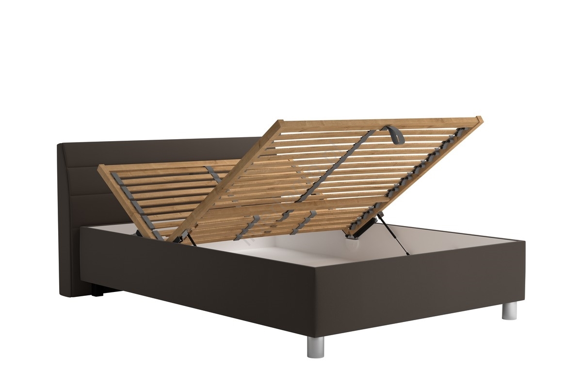 • Łóżko jest wyposażone w mechanicznie regulowany stelaż lamelowy P12, który zawiera 28 listew umieszczonych w ruchomych gumowych tulejach.