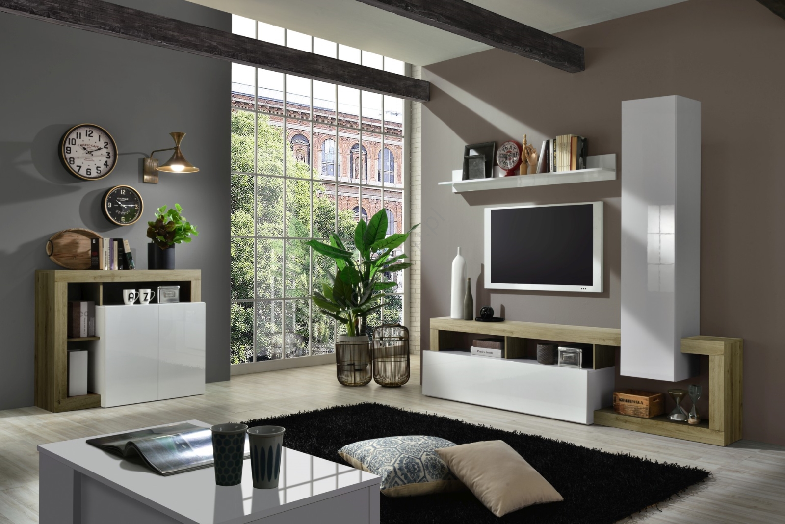 • Wnieś do swojego domu szyk i elegancję tej meblościanki, która kładzie nacisk na czyste linie i ponadczasowy wygląd.