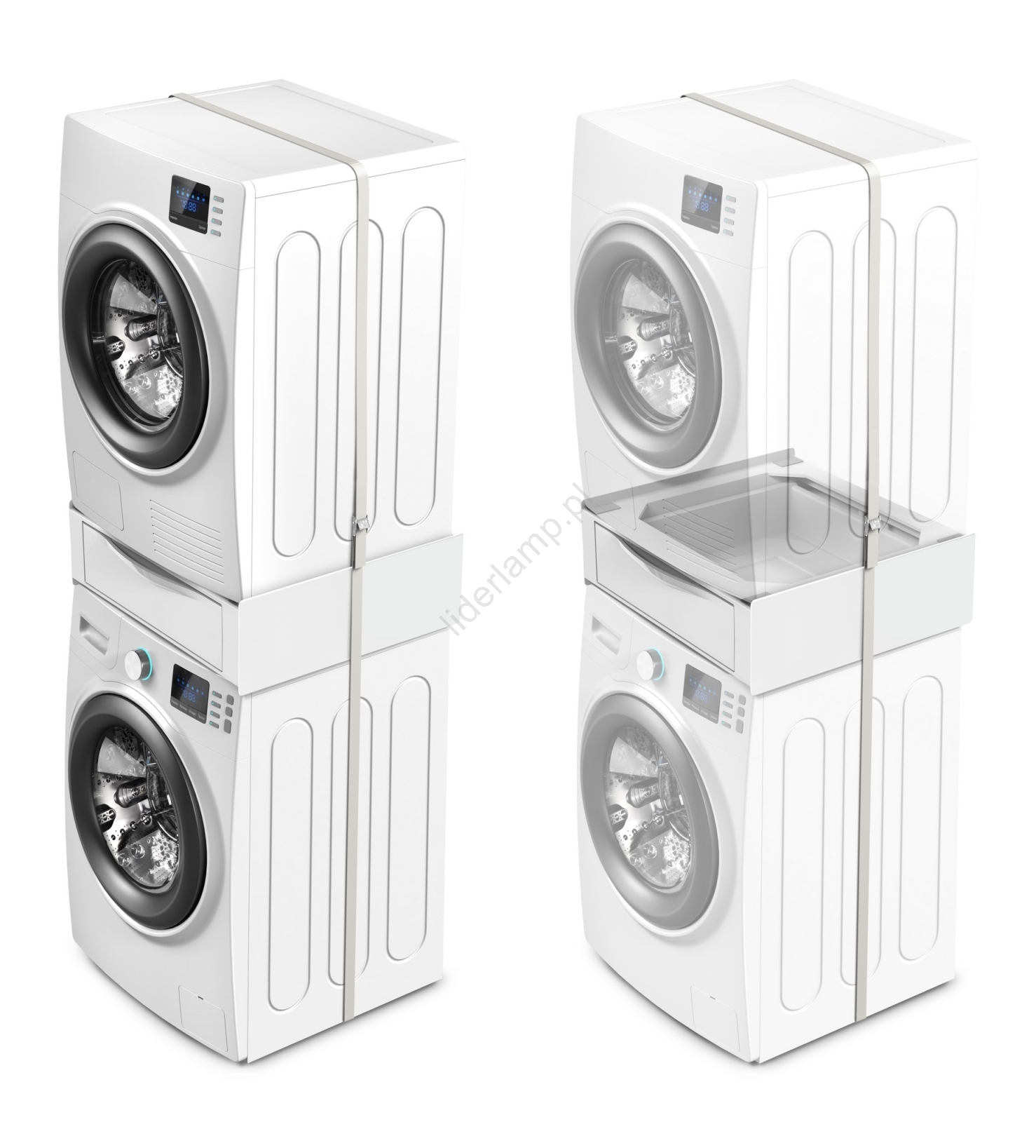 • Uniwersalny zestaw łączący do pralek i suszarek ładowanych od frontu o szerokości do 60 cm.