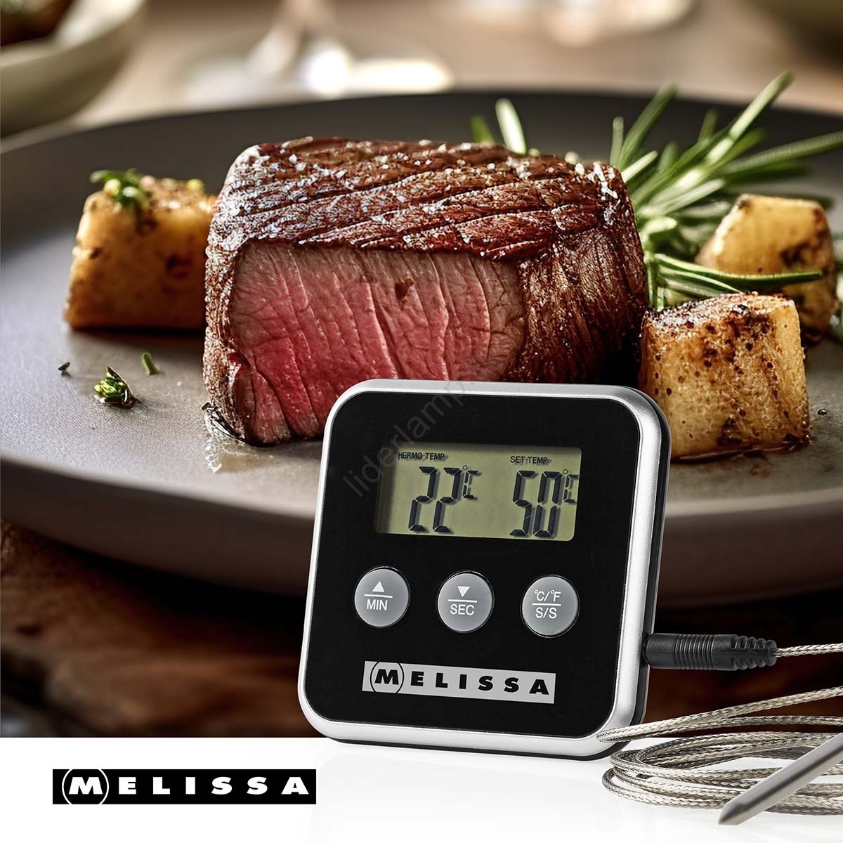 Melissa - Termometr do mięsa z cyfrowym wyświetlaczem i minutnikiem 0-250 °C 1xAAA