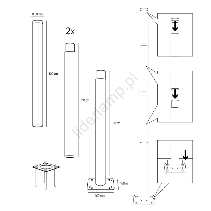ReviewsWidget_ReviewsAboutUs Metalowy pręt do słupa oświetlenia zewnętrznego BASE, 4 m, Ø 60 mm, czarny | Liderlamp.pl