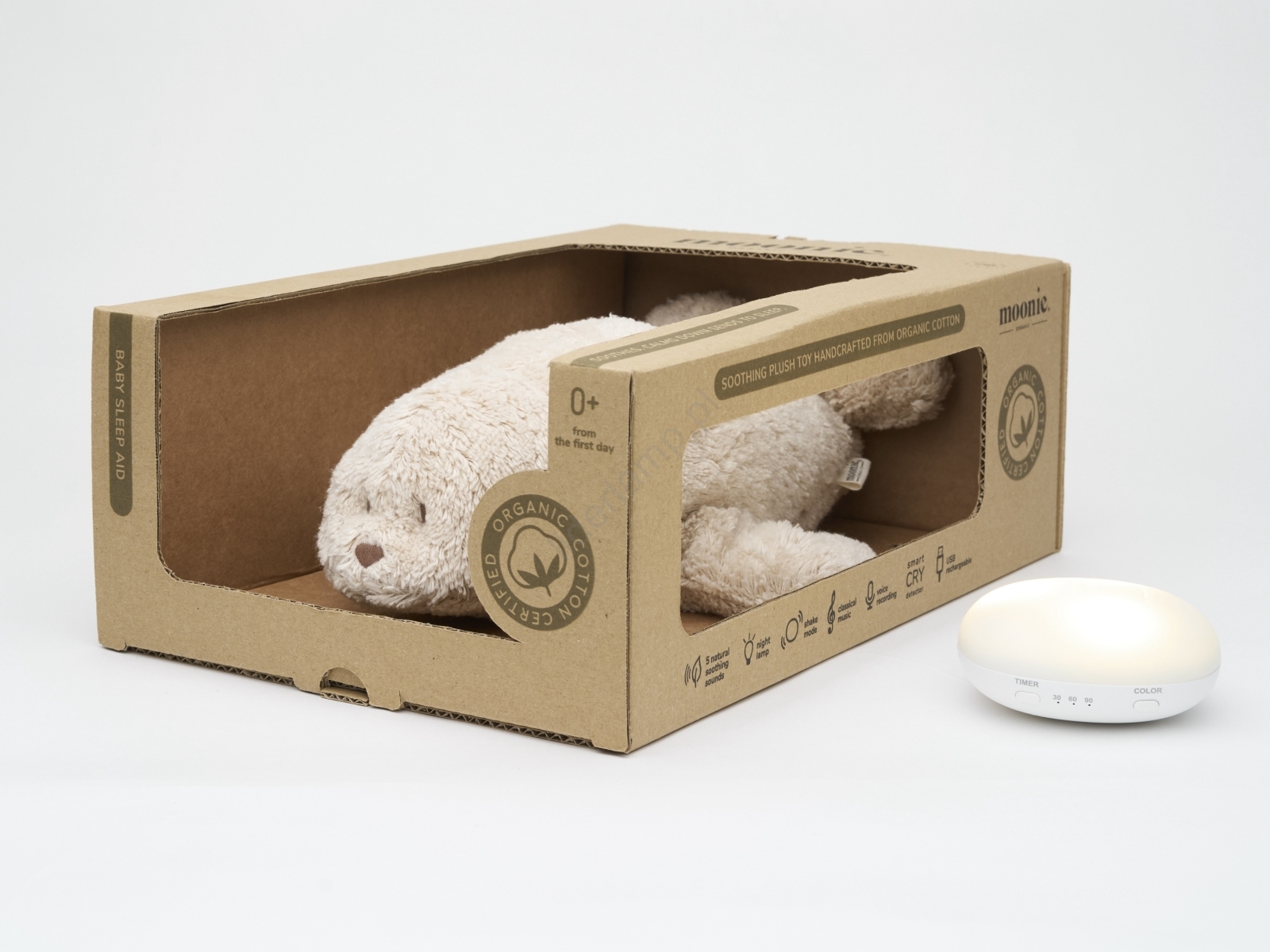 • Moonie - Przytulanka usypiająca z melodią i światłem foka organic sand