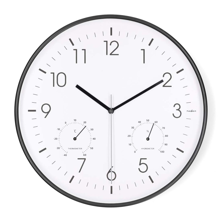 ReviewsWidget_ReviewsAboutUs Nedis CLWA4226BK - Zegar ścienny z termometrem i higrometrem, śr. 30,5 cm, 1xAA, czarny | Liderlamp.