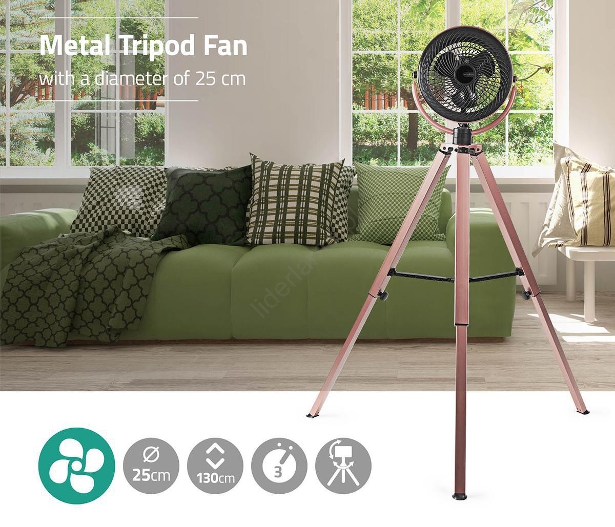 Wentylator na statywie 45W/230V różowe złoto