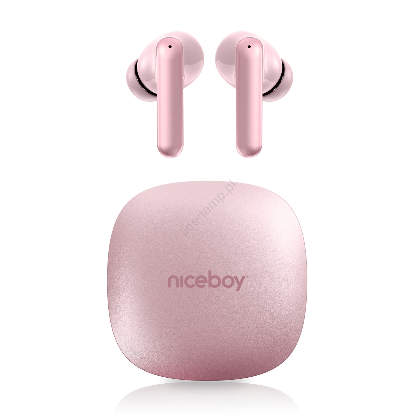 Niceboy Pins 4 PRO - bezprzewodowe słuchawki z ANC, 380 mAh + 2x 35 mAh, IP54, różowe