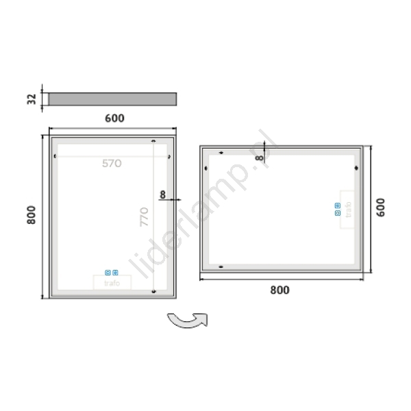 • Designerskie lustro ścienne z podświetleniem LED.