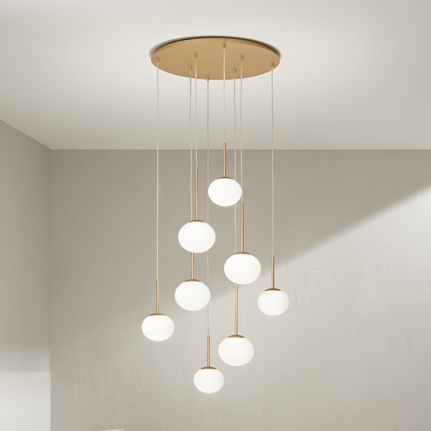 • Ondaluce - Żyrandol na lince JEWEL 8xE14/10W/230V śr. 70 cm złoty/biały