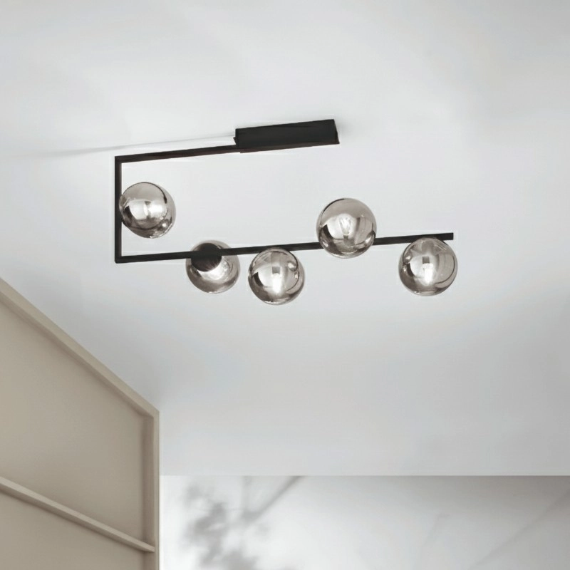 Ondaluce - Żyrandol na pręcie MONILE 5xE14/10W/230V czarny/dymny