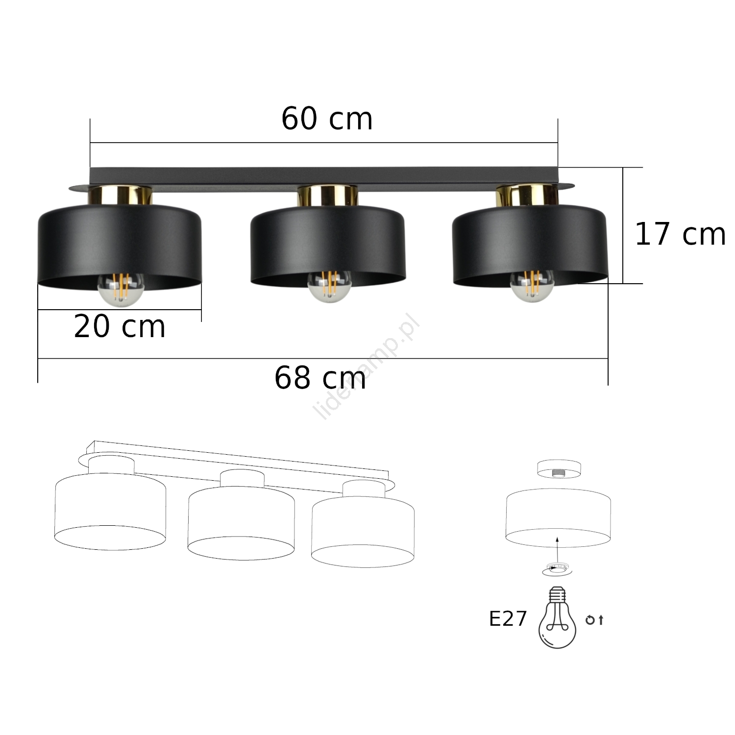 Lampa sufitowa IGNIA 3xE27/60W/230V czarna/złota charakteryzuje się ładnym i funkcjonalnym designem.  Do lampy pasuje żarówka z trzonkiem E27. Tutaj kupisz inne żarówki w korzystnych cenach. Będziesz mieć ciekawy dodatek do swojego domu.