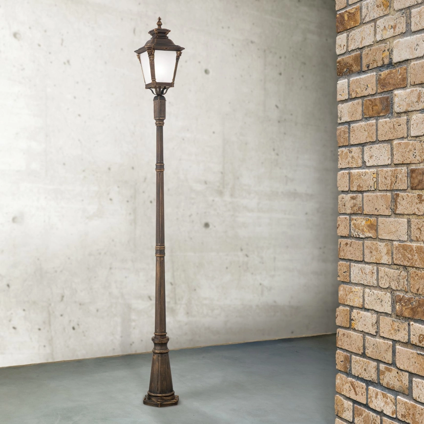 Lampa zewnętrzna AIKO 1xE27/60W/230V 240 cm IP23 brąz/patyna charakteryzuje się ładnym i funkcjonalnym designem.  Do lampy pasuje żarówka z trzonkiem E27. Tutaj kupisz inne żarówki w korzystnych cenach. Będziesz mieć ciekawy dodatek do swojego domu.