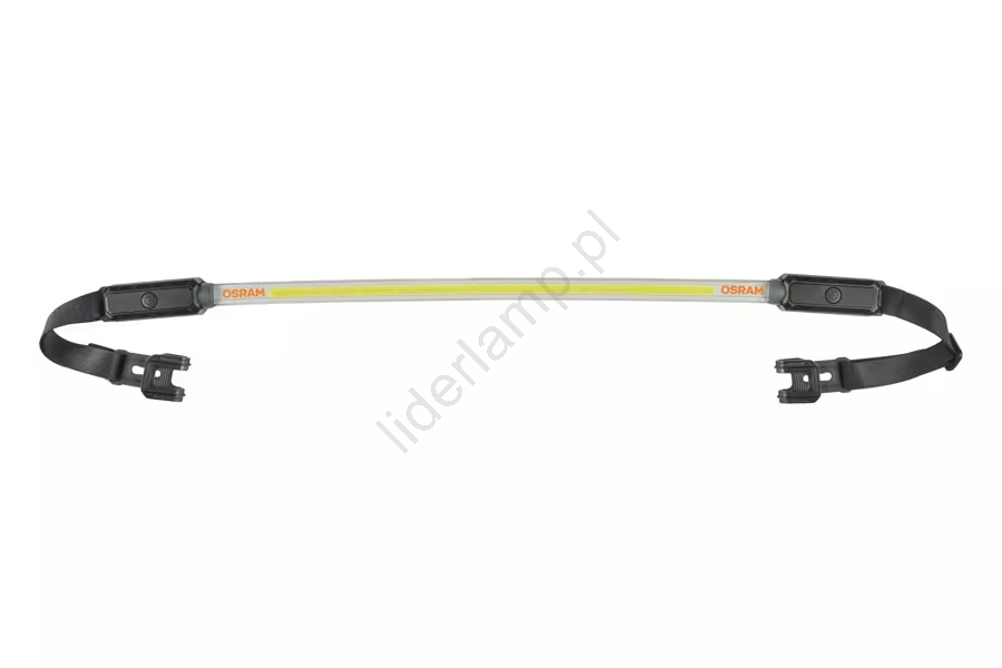• Jest wyposażona w odpinane elastyczne paski, które umożliwiają przymocowanie światła do powierzchni o szerokości do 2,1 m.