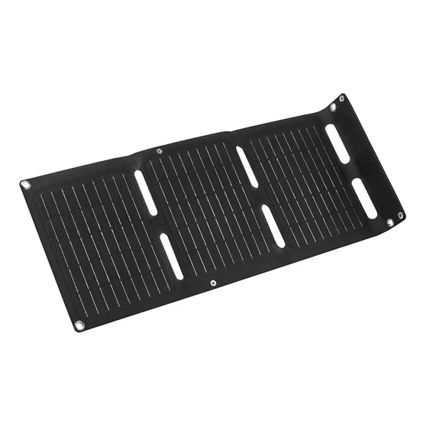 • Wyposażony w monokrystaliczne panele słoneczne, zamknięte w solidnej, wodoszczelnej obudowie (IP65), dostarcza aż 20 W energii słonecznej — idealnej do ładowania telefonów, tabletów i laptopów przez porty USB-C i USB-A (5 V, 2,4 A).