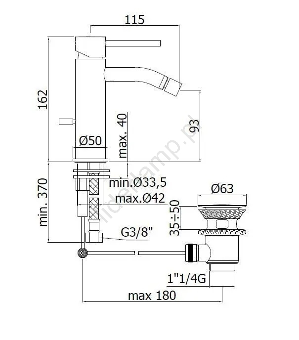 • Stojąca jednouchwytowa bateria bidetowa o nowoczesnym, minimalistycznym wzornictwie.
