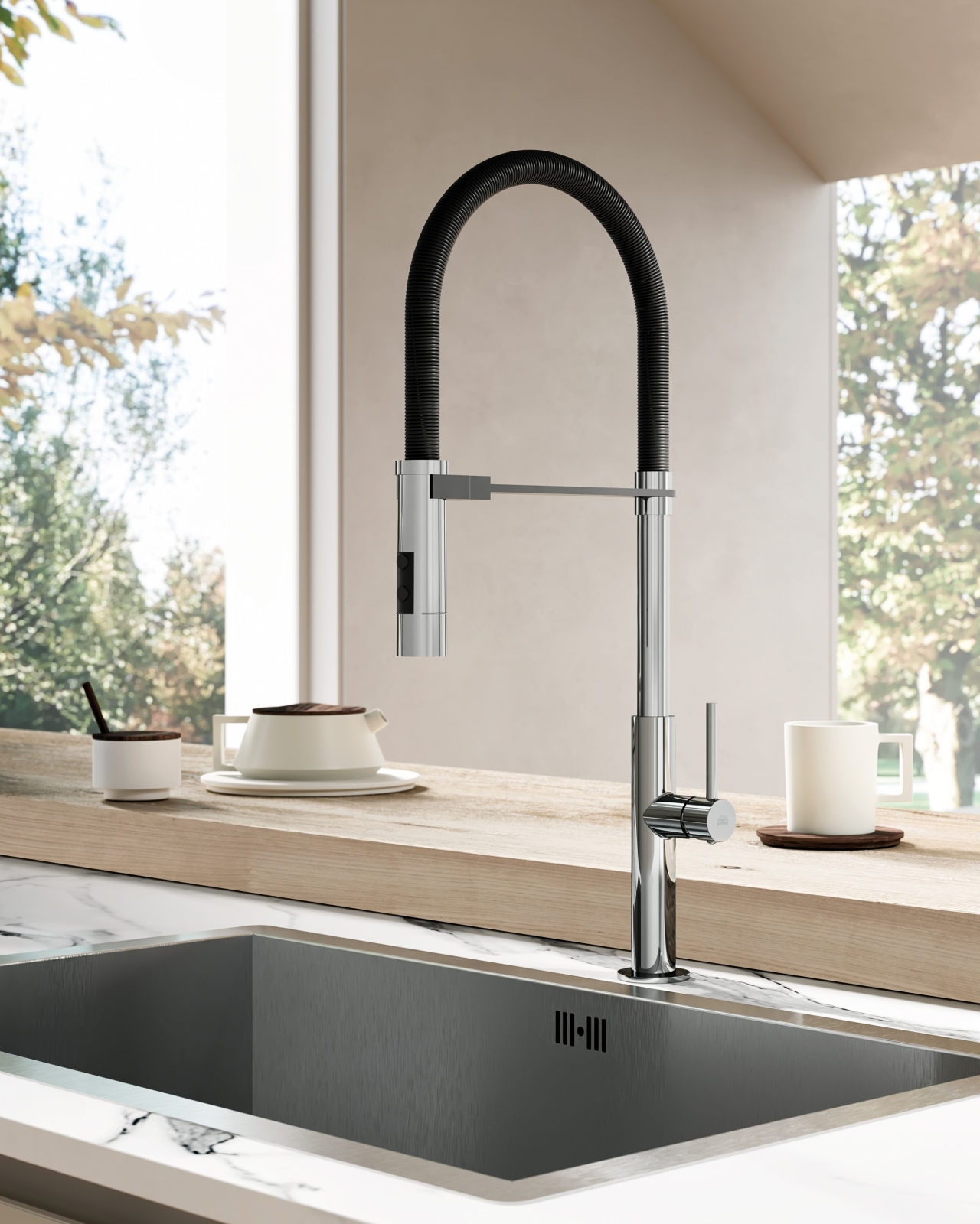• Bateria zlewozmywakowa Paffoni Candy z czarnym chromowanym wykończeniem.