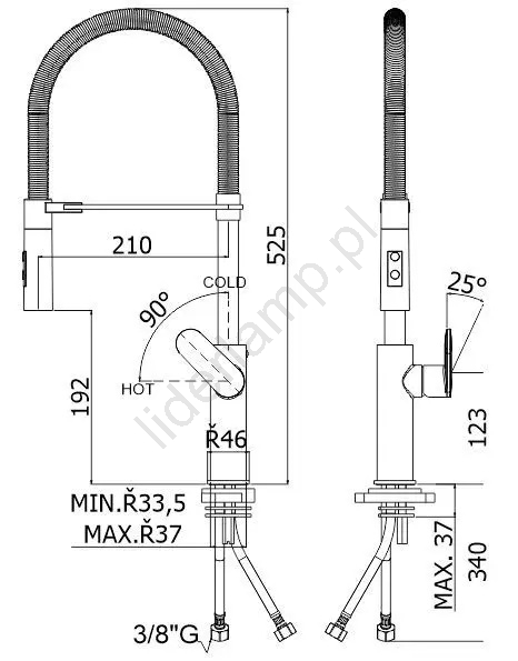 • Wysuwana słuchawka ułatwia płukanie zlewu, warzyw i większych garnków.