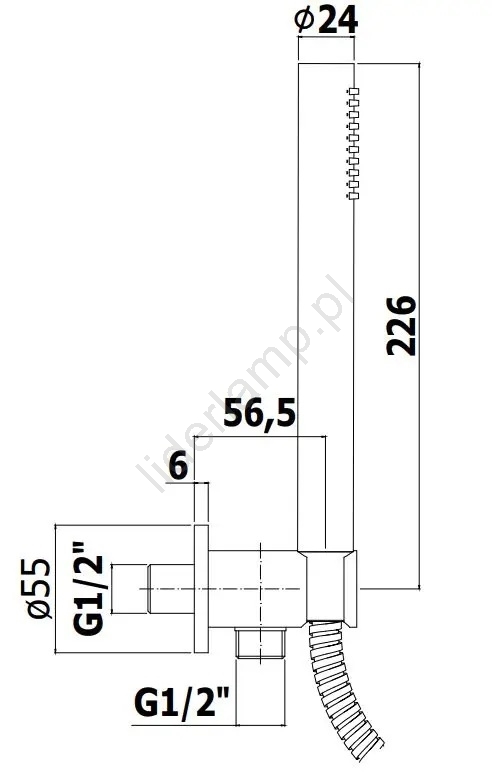 • W komplecie wąż prysznicowy o długości 1500 mm z podwójnym oplotem.