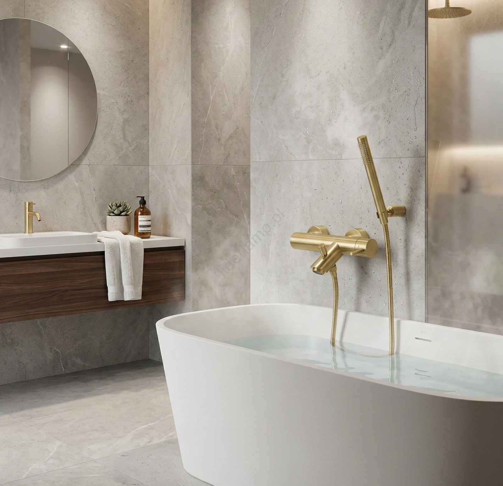 • Matowe, szczotkowane złote wykończenie — idealne do eleganckiej łazienki.