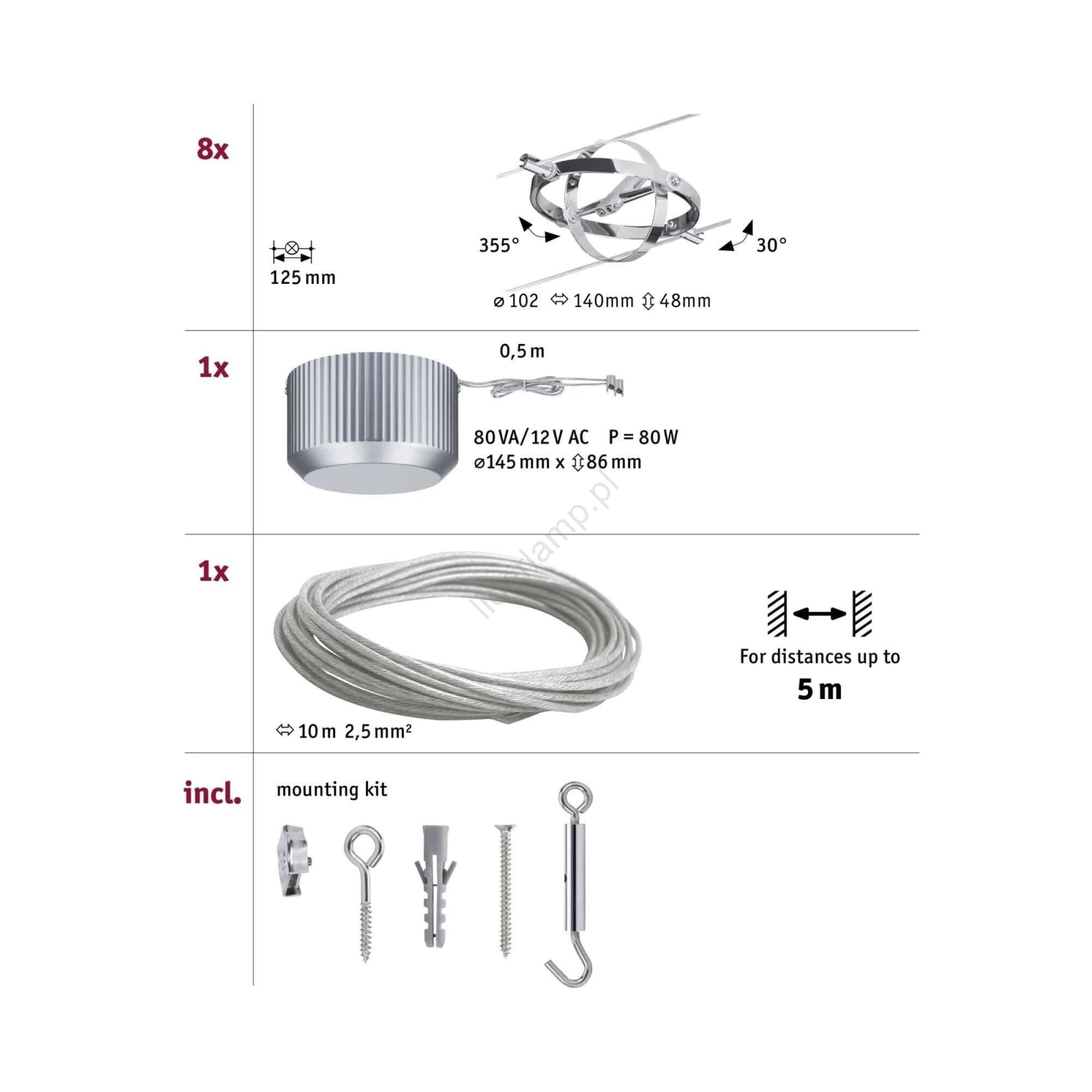 Paulmann 94153 - ZESTAW 8xGU5,3/10W Oprawa punktowa do systemu linkowego CARDAN 230V