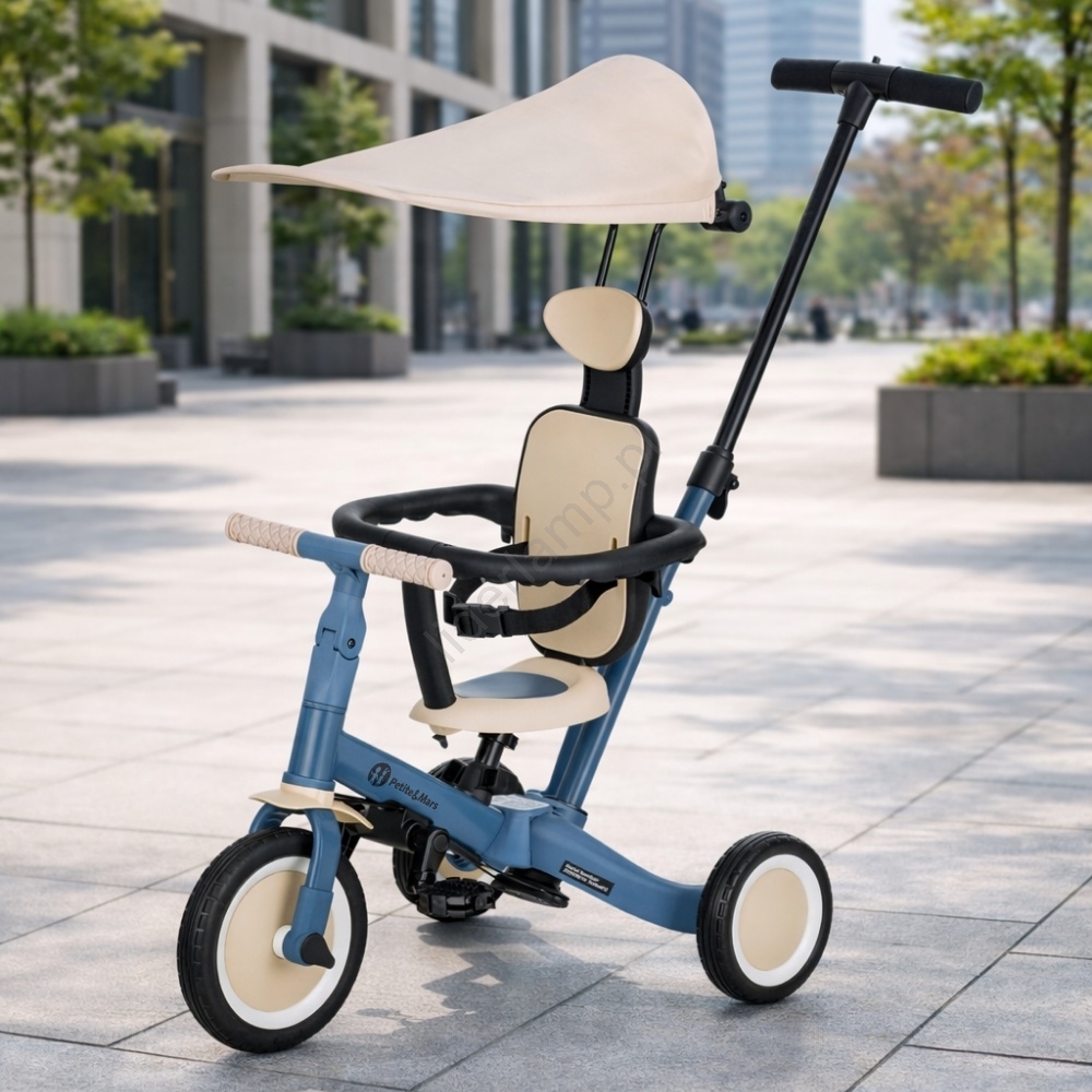 PETITE&MARS - Dziecięcy trójkołowy rowerek 5 w 1 TURBO PLUS Ocean Blue