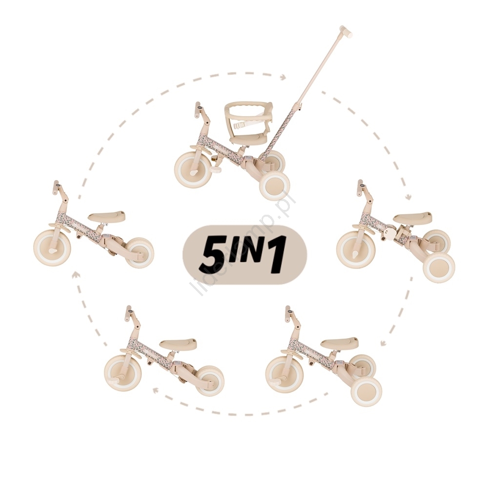 • Wielofunkcyjny trójkołowiec z 5 trybami, dopasowanymi do wieku i umiejętności dziecka.