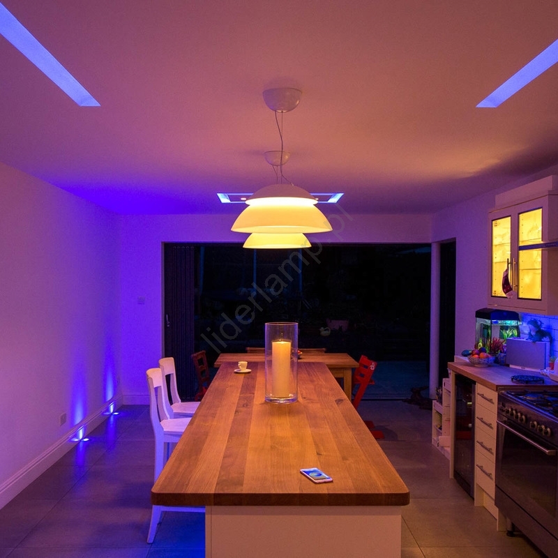 Stwórz doskonałą atmosferę za pomocą ściemnialnych świateł Philips Hue. Energooszczędne oświetlenie, którym możesz sterować na odległość i pomoże stworzyć Ci doskonałe warunki świetlne, które będą odpowiadać Twojej wyobraźni, czynności lub humoru.