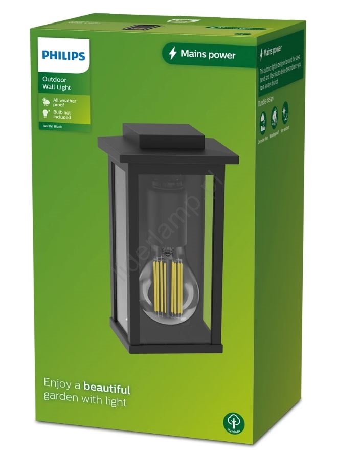 Philips - Kinkiet zewnętrzny MIRTH 1xE27/25W/230V IP44 charakteryzuje się ładnym i funkcjonalnym designem.  Do lampy pasuje żarówka z trzonkiem E27. Tutaj kupisz inne żarówki w korzystnych cenach. Będziesz mieć ciekawy dodatek do swojego domu.