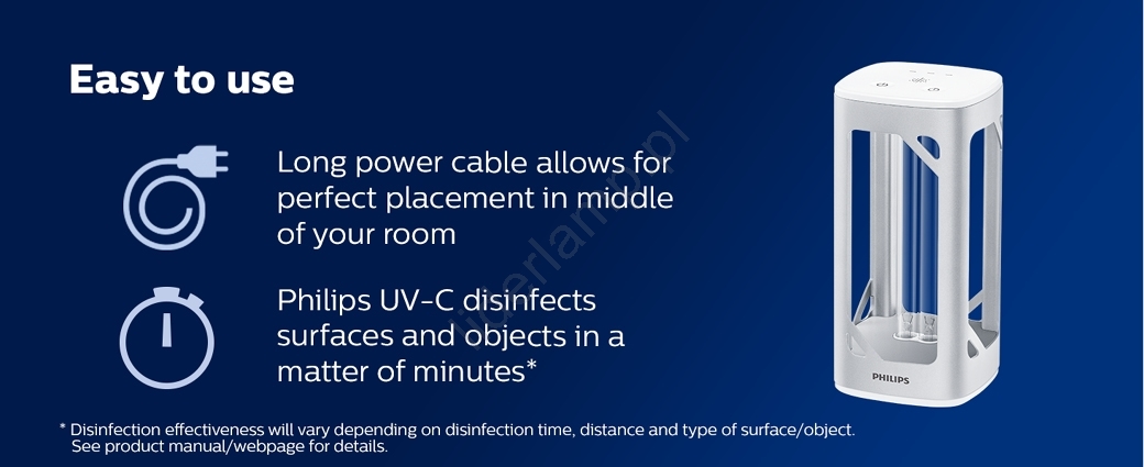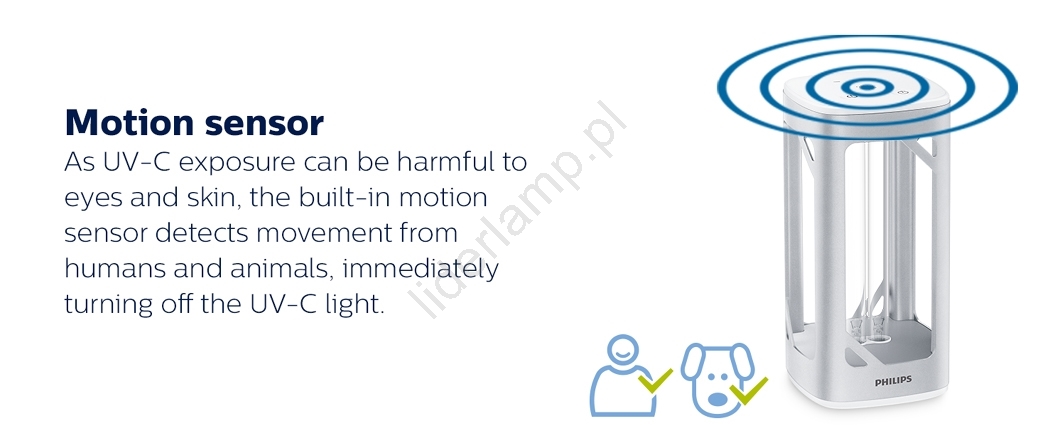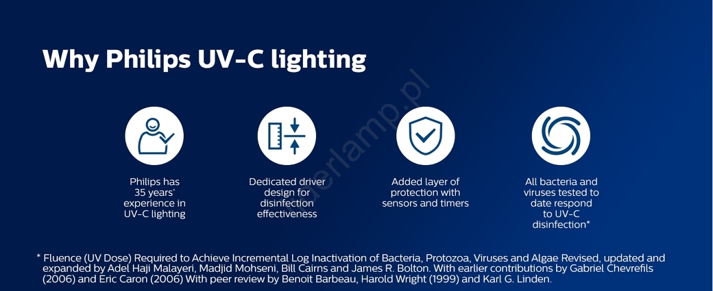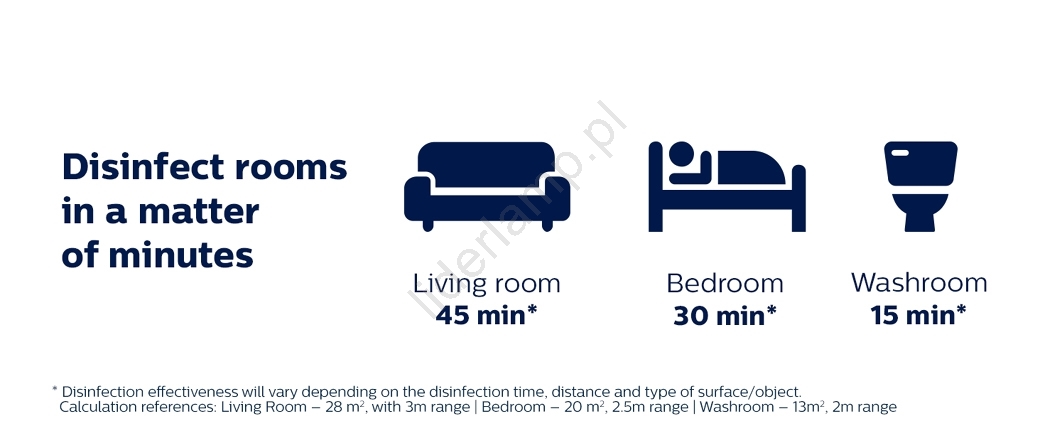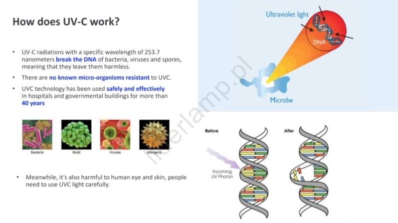Produkt zawiera rtęć. Produkt emituje promieniowanie ultrafioletowe, które jest niebezpieczne. Nie jest przeznaczony do ogólnego oświetlenia. Promieniowanie z tego źródła światła jest niebezpieczne i szkodliwe dla skóry, błon śluzowych oraz wzroku. Aby uniknąć uszkodzeń zdrowia (urazów, oparzeń, chorób), należy unikać bezpośredniej i pośredniej ekspozycji na światło. Lampy bakteriobójcze nie powinny bezpośrednio naświetlać pomieszczeń, w których przebywają ludzie, zwierzęta ani rośliny. Po sterylizacji zaleca się wietrzenie przez 20-30 minut.