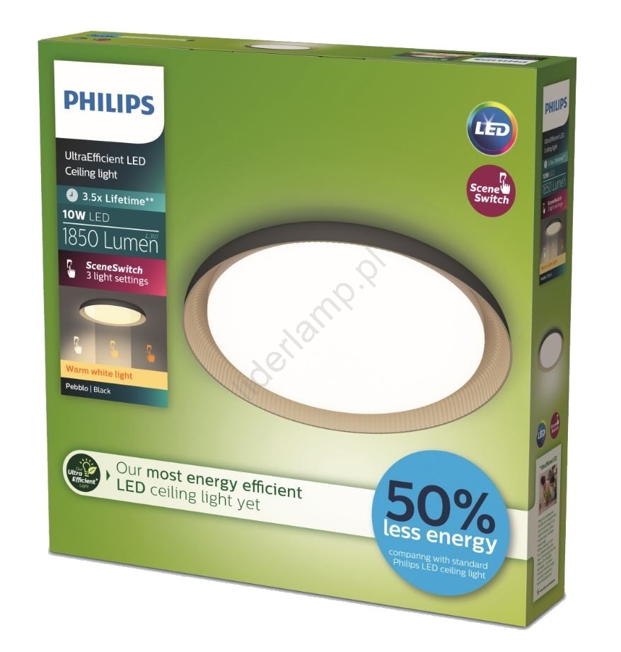 • Philips - LED Plafon ściemnialny PEBBLO SCENE SWITCH LED/10W/230V 2700K czarny