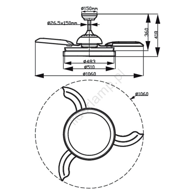 • Średnica wentylatora z łopatkami: 1060 mm.