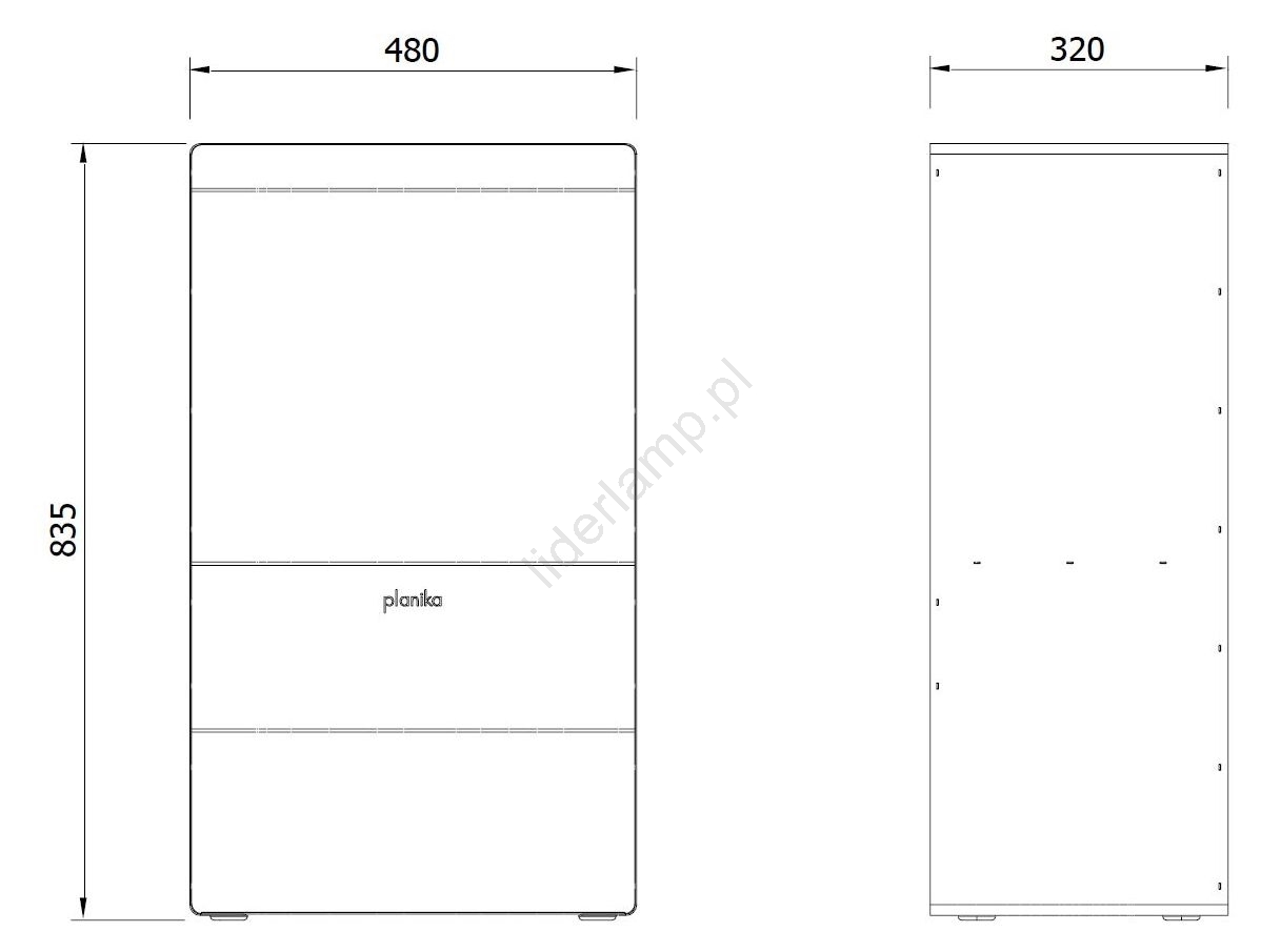 • Wymiary kominka: 83,5 x 32 x 48 cm.