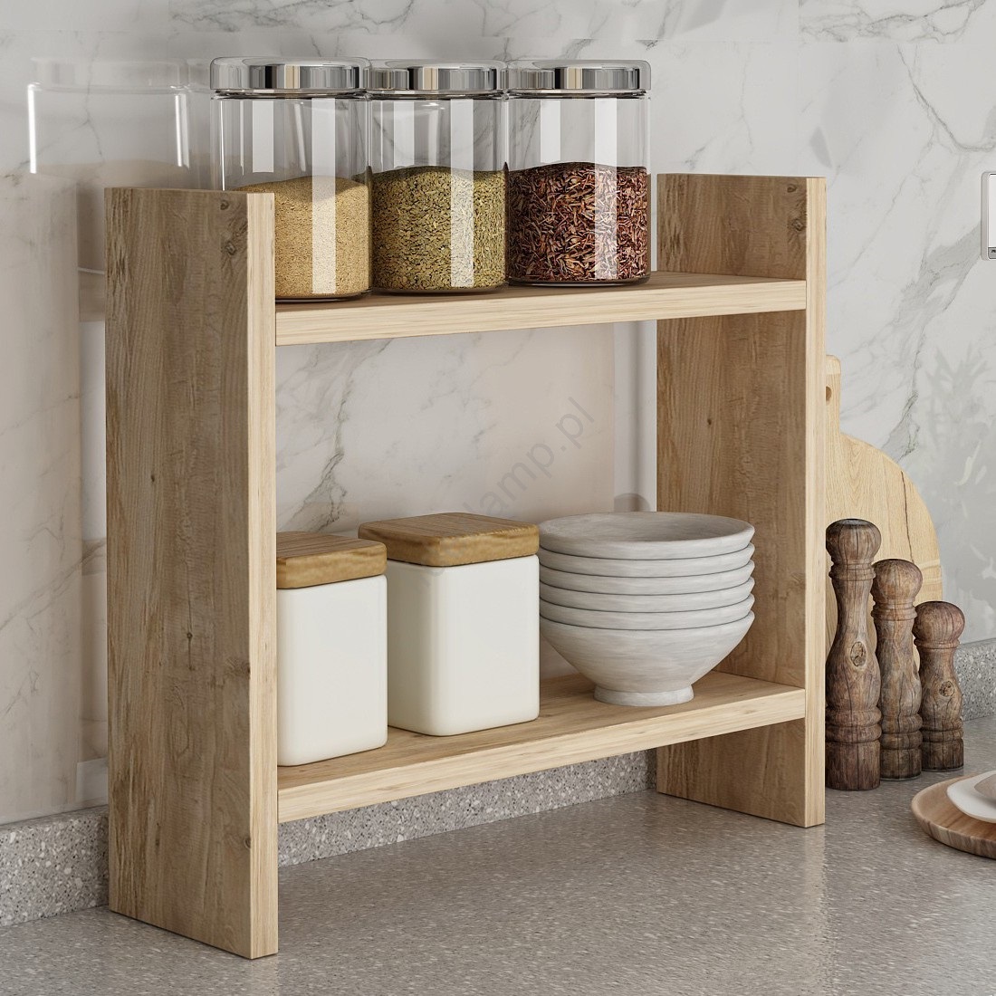 • Możesz ją postawić na blacie kuchennym, tworząc praktyczną przestrzeń do przechowywania.