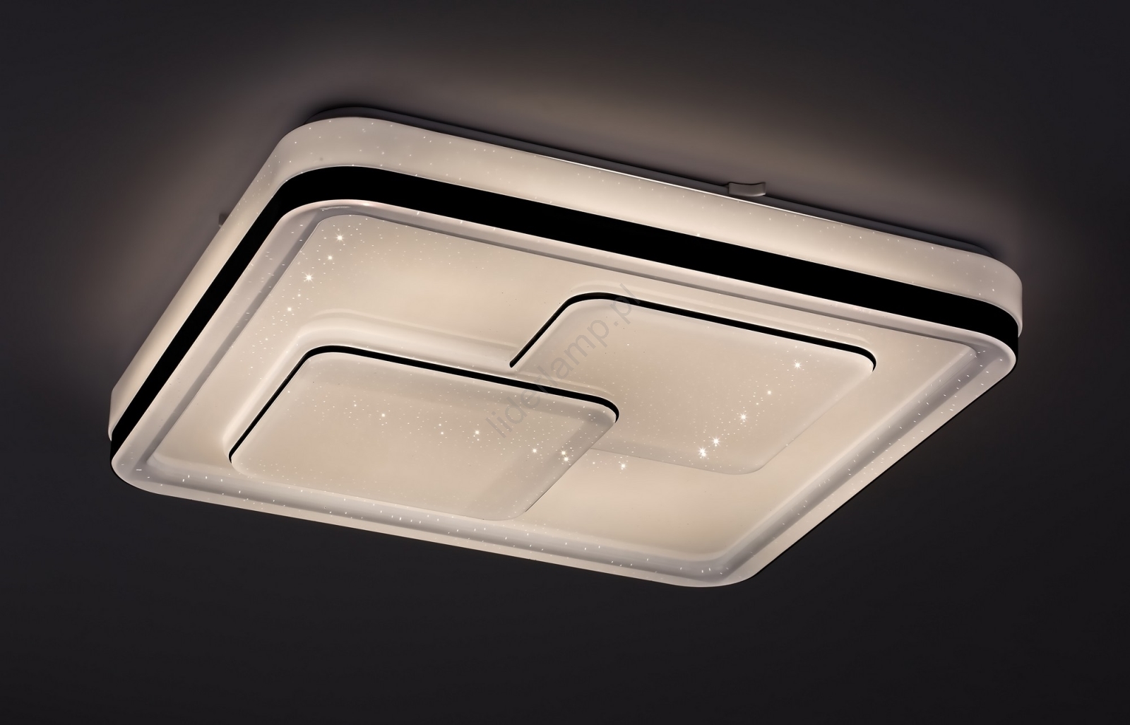 Kwadratowa lampa sufitowa Hecate z efektem gwiazdowym będzie doskonałym wyborem do nowoczesnego salonu, sypialni lub gabinetu. Czarna metalowa oprawa uzupełniona jest białym plastikowym kloszem, a kwadratowy kształt lampy łagodzą zaokrąglone narożniki. Lampa Hecate zawiera wbudowane źródło światła LED o mocy 40W, strumieniu świetlnym 2970 lumenów oraz wyjątkowej żywotności 50 000 godzin! Temperatura barwowa światła wynosi 4000 K, co zapewnia naturalne białe światło i tworzy w pomieszczeniu czysty, nowoczesny efekt. Wymiary tej lampy sufitowej to 485x485 mm, a odległość od sufitu wynosi 70 mm. Na lampę Hecate udzielamy 5-letniej gwarancji.