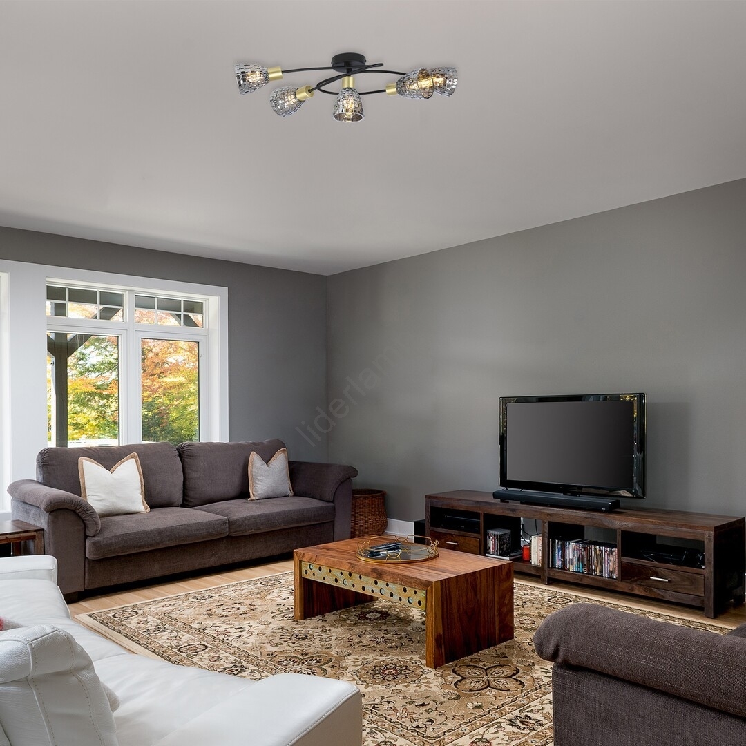 Lampa punktowa Stacy z pięcioma źródłami światła polecana jest osobom ceniącym motywy w nowoczesnym klasycznym stylu, które poszukują oświetlenia o wyjątkowym designie do salonu, sypialni lub jadalni. Metalowa konstrukcja w kolorze czarnym i antycznego brązu uzupełniona jest szklanymi kloszami w kolorze dymnym, do których zaleca się zastosowanie pięciu źródeł światła o maksymalnej mocy 40 W, z gwintem typu E14. Lampa punktowa ma szerokość 630 mm i odstęp 185 mm od sufitu. Lampa punktowa Stacy dostarczana jest bez żarówek.