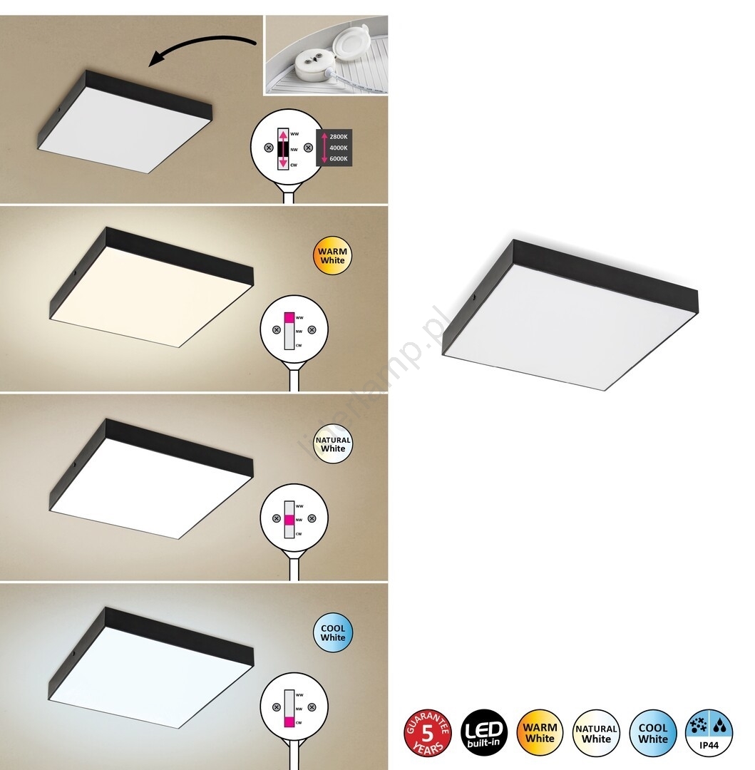 Rabalux - Lampa sufitowa LED/24W/230V 2800-6000K IP44 czarna 30x30 cm