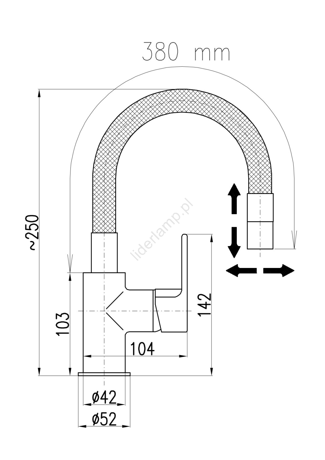 • Praktyczne obrotowe ramię ułatwia mycie naczyń oraz całego zlewu i umywalki.