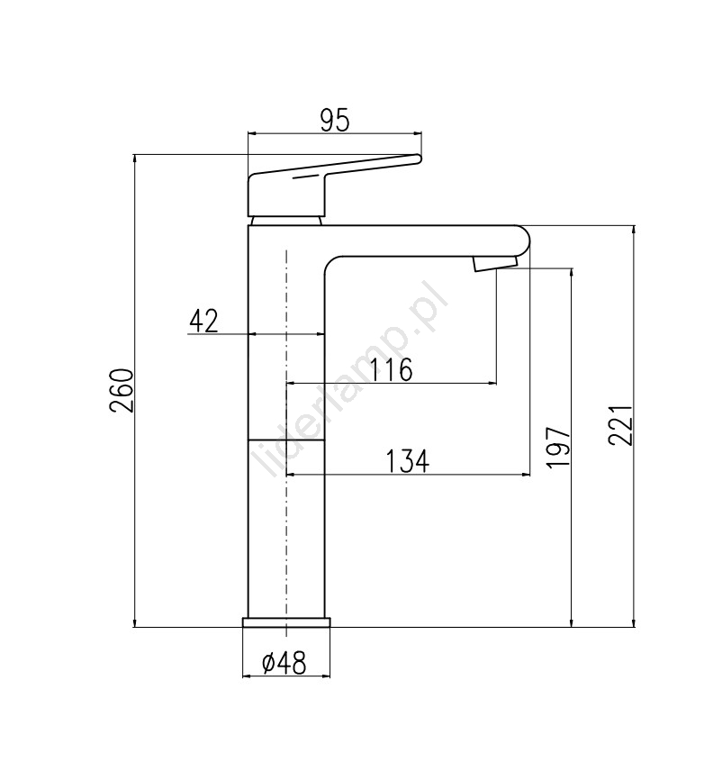 • Bateria umywalkowa stojąca bez zestawu odpływowego.