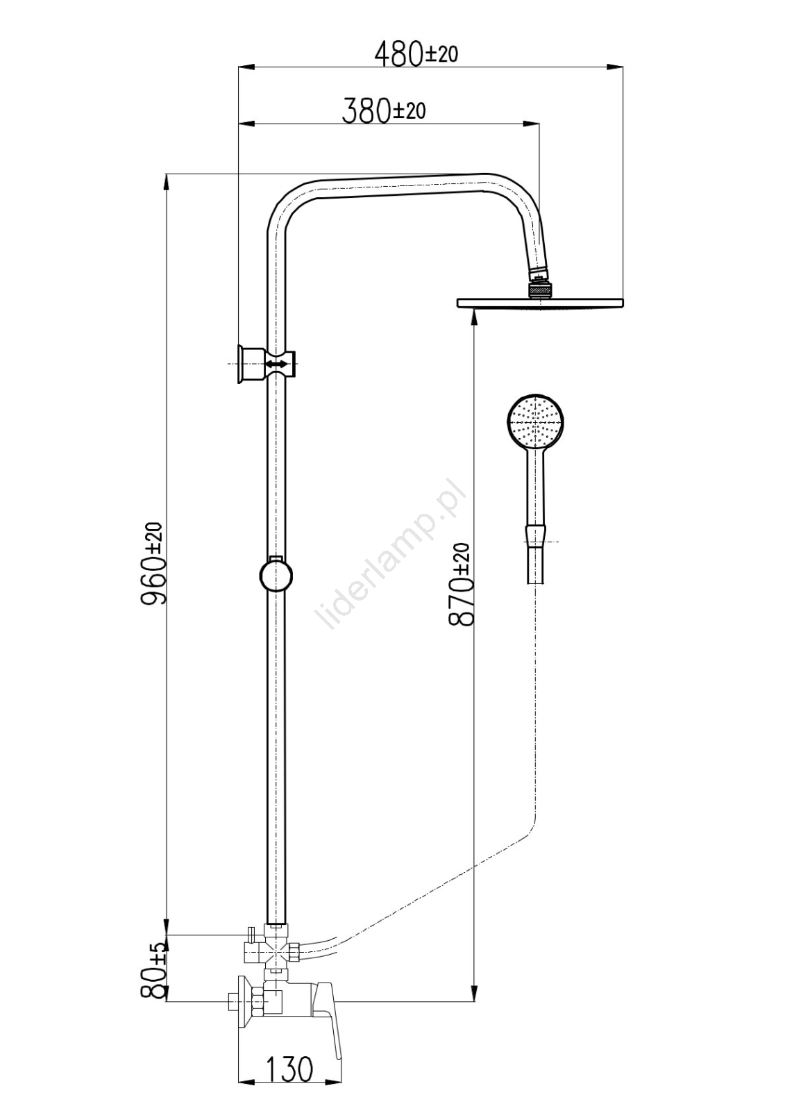 • Zestaw prysznicowy z baterią oraz deszczownicą i słuchawką prysznicową.