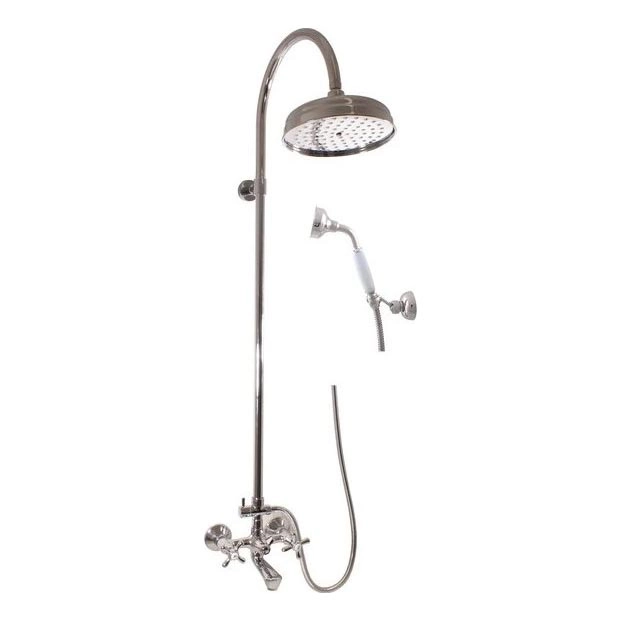 • Zestaw wannowy ze ścienną baterią wannową, głowicą prysznicową i słuchawką prysznicową.