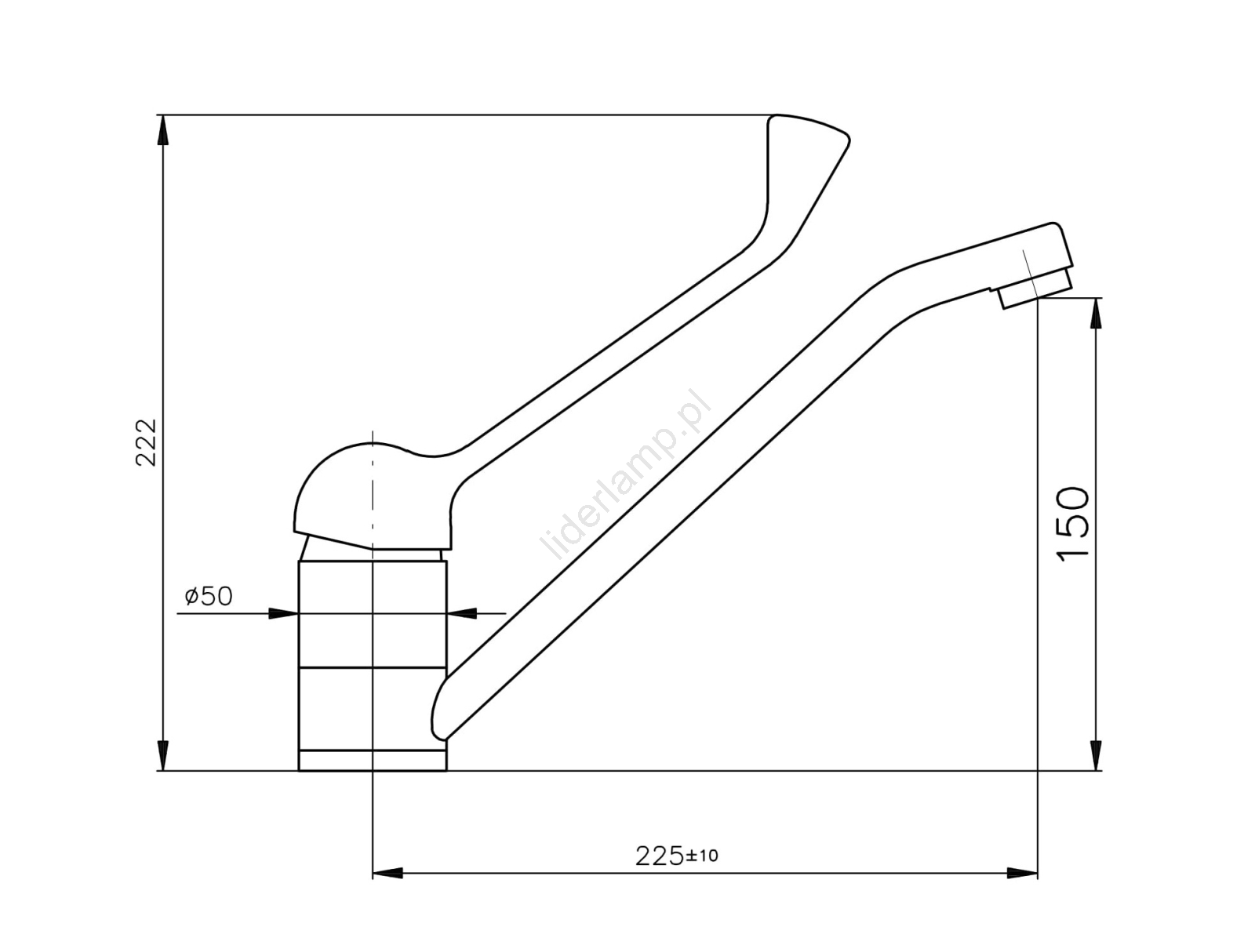 • Bateria umywalkowa stojąca bez korka odpływowego z dźwignią medyczną.