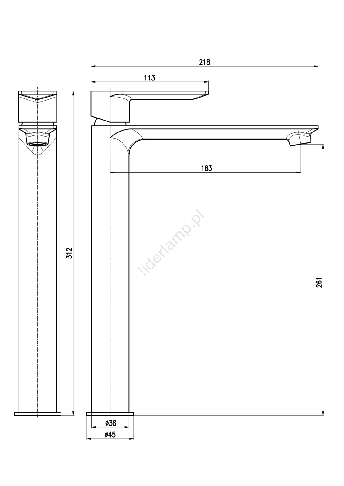 • Bateria umywalkowa stojąca bez korka spustowego.