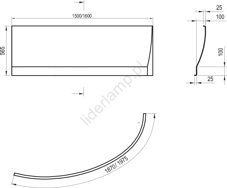 • Panel osłonowy o wymiarach: 1975 x 565 mm.