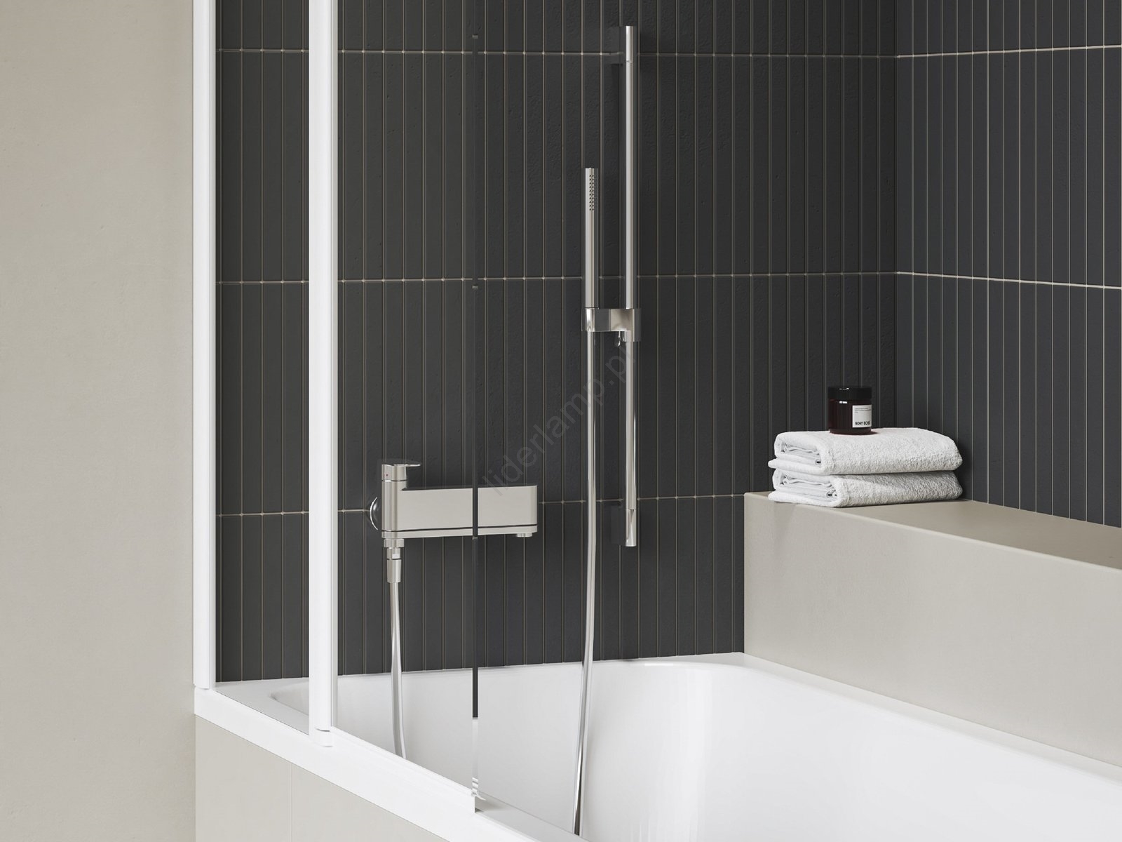 • Unikalne obrotowe ramię przełączające łączy funkcję napełniania wanny i przełączania na prysznic w jednym elemencie.