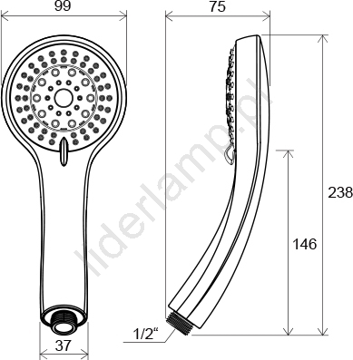 • Głowica o średnicy 99 mm zapewnia równomierne rozprowadzenie strumienia wody.