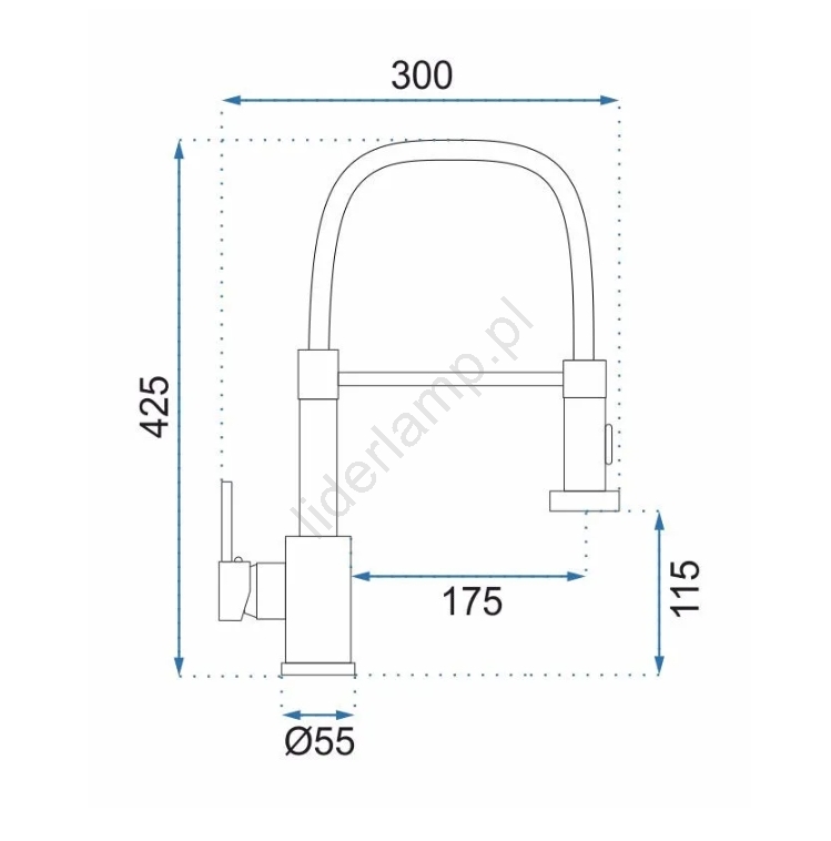 • Praktyczne elastyczne ramię z dyszą natryskową.