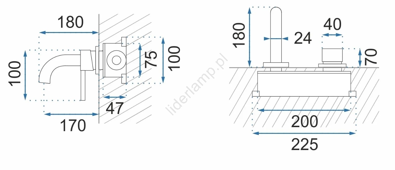 • Montaż w ścianie za pomocą systemu BOX – moduł z tworzywa sztucznego z mosiężnymi elementami wewnętrznymi.