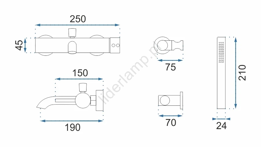 • Zestaw zawiera: baterię wannową, słuchawkę prysznicową, wąż prysznicowy (190 mm), uchwyt na słuchawkę prysznicową.